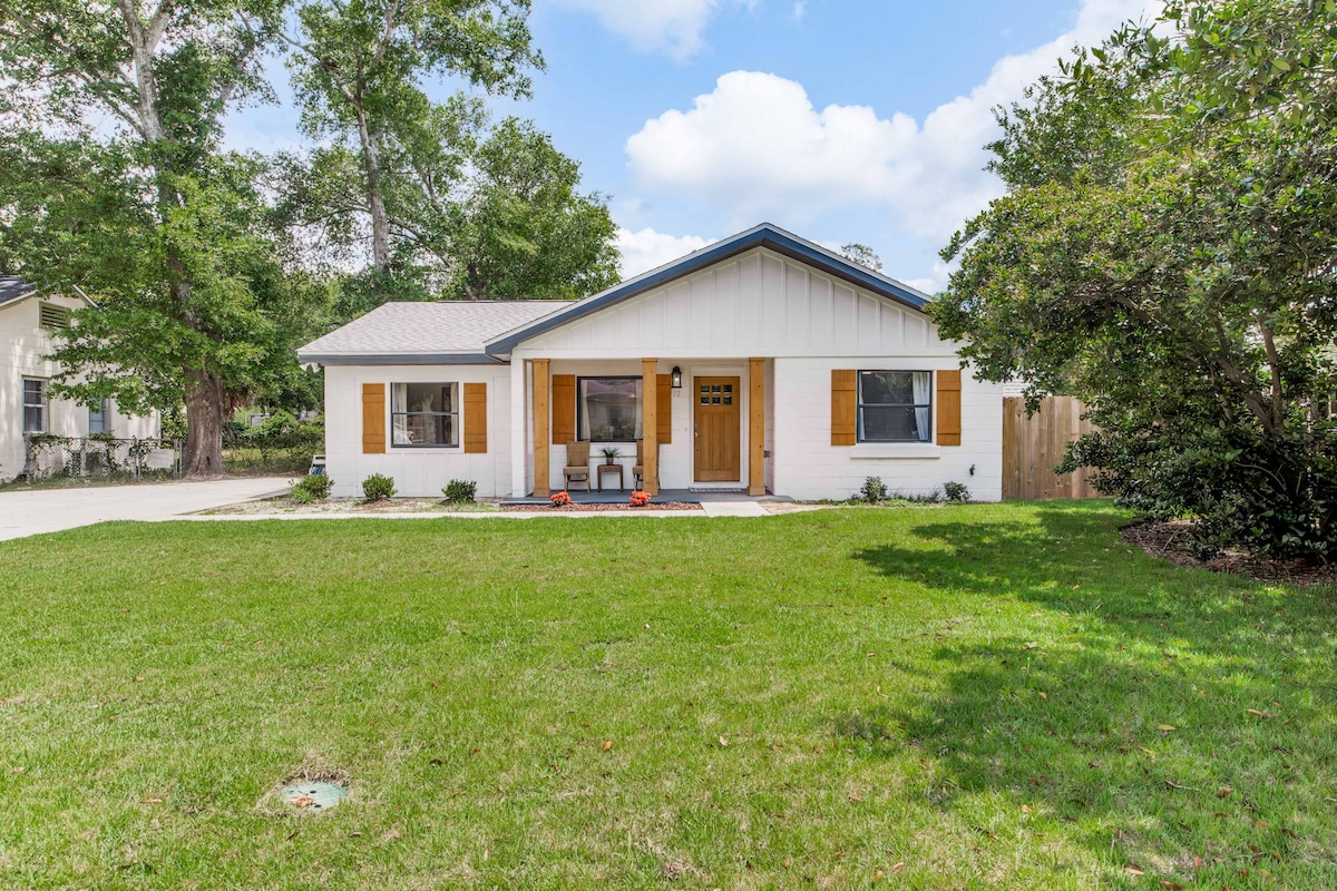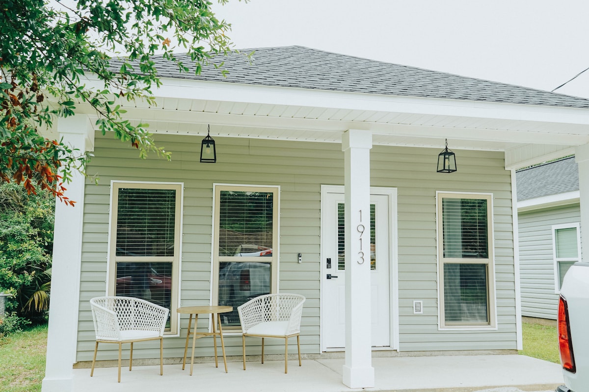 Charming, pet-friendly cottage in Downtown Pensacola! Just minutes to beautiful beaches, Palafox Market, breweries, coffee shops, and the Blue Angels. Enjoy a spacious fenced yard for your pups, fast, reliable Wi-Fi, and a game room for fun nights in. Perfectly stocked for military families, wedding guests, staycations, or remote work. Close to parks, shopping, and dining. Dogs welcome—with treats and bowls! Feel right at home in this comfortable, convenient, and well-located Pensacola escape.