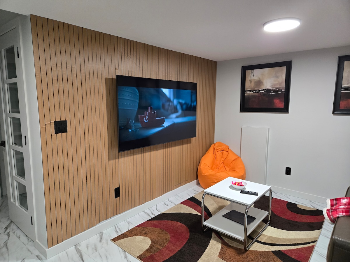 Brand New, clean and spacious. This lower level apartment is an excellent place for a short business trip or for a longer visit. It's excellent for a solo traveler, couple and families on vacation. It has a beautiful spacious bedroom with a queen bed. Bright bathroom for all your 🤳 selfies and in suite laundry. There's a queen foam mattress and an inflatable matress available for additional sleeping.