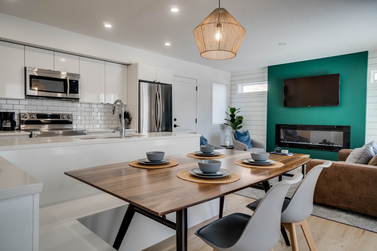 Nestled in Edmonton's delightful Keswick neighborhood, our freshly built two-story house is a blend of elegance and comfort, designed to make your stay unforgettable: Newly Constructed 2-Story Home Approximately 1400 sq. ft. Bedrooms: 3 (Master with King, 2 Rooms with Queen Beds) Bathrooms: 2.5 Air Conditioning Double Garage Entertainment: Apple TV Super-Fast WiFi Laundry Facilities On-Site Fully Equipped Kitchen 15 Minutes from Edmonton International Airport Proximity to Prime Shopping Area
