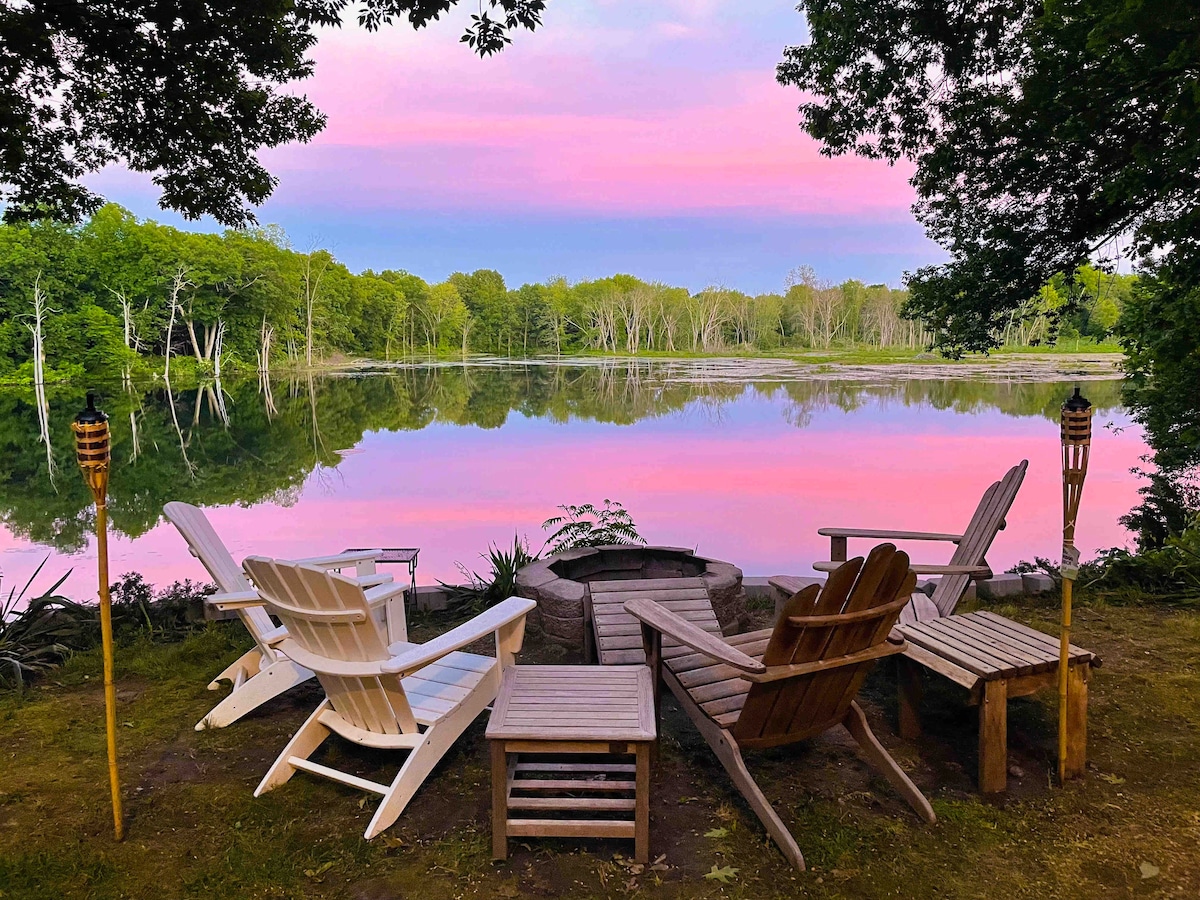 Woods’n’wetlands located in beautiful New Boston NH. There are so many options for things to do nearby. Not only can you enjoy Skiing and snowboarding at multiple different mountains (Crotched Mountain, Pats Peak, and McIntyre), you can also explore many boutique towns nearby. Or explore one of the many hiking trails. Including some world renown ones! (Mount Monadnock) After your adventures you will have a cozy warm place to unwind and relax.