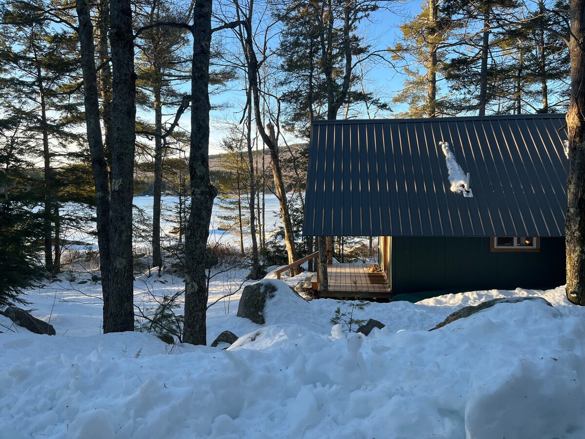 Rustic Maine Charm just minutes from downtown Ellsworth and 40 minutes to Acadia National Park. This a fun couples get-a-way. Everything you need for a comfortable fun stay. Full shower, plumbed in toilet and queen bed in the loft. The loft is accessible by ladder. Lakefront location on crystal clear Beech Hill Pond. A 5 mile long lake. Beach, kayak and paddle boat for fun on the water.