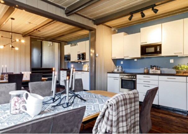 Enjoy a stylish experience in a centrally located place. Well-equipped and cozy apartment with everything you need for some nice days in the mountains. Here you can park your car in a heated garage. Grocery store, sports shop, gym and wine shop in the same building. Only 10 meters to cross-country ski trails, 300 meters to alpine facilities. Several great, good restaurants and shops in the immediate vicinity.