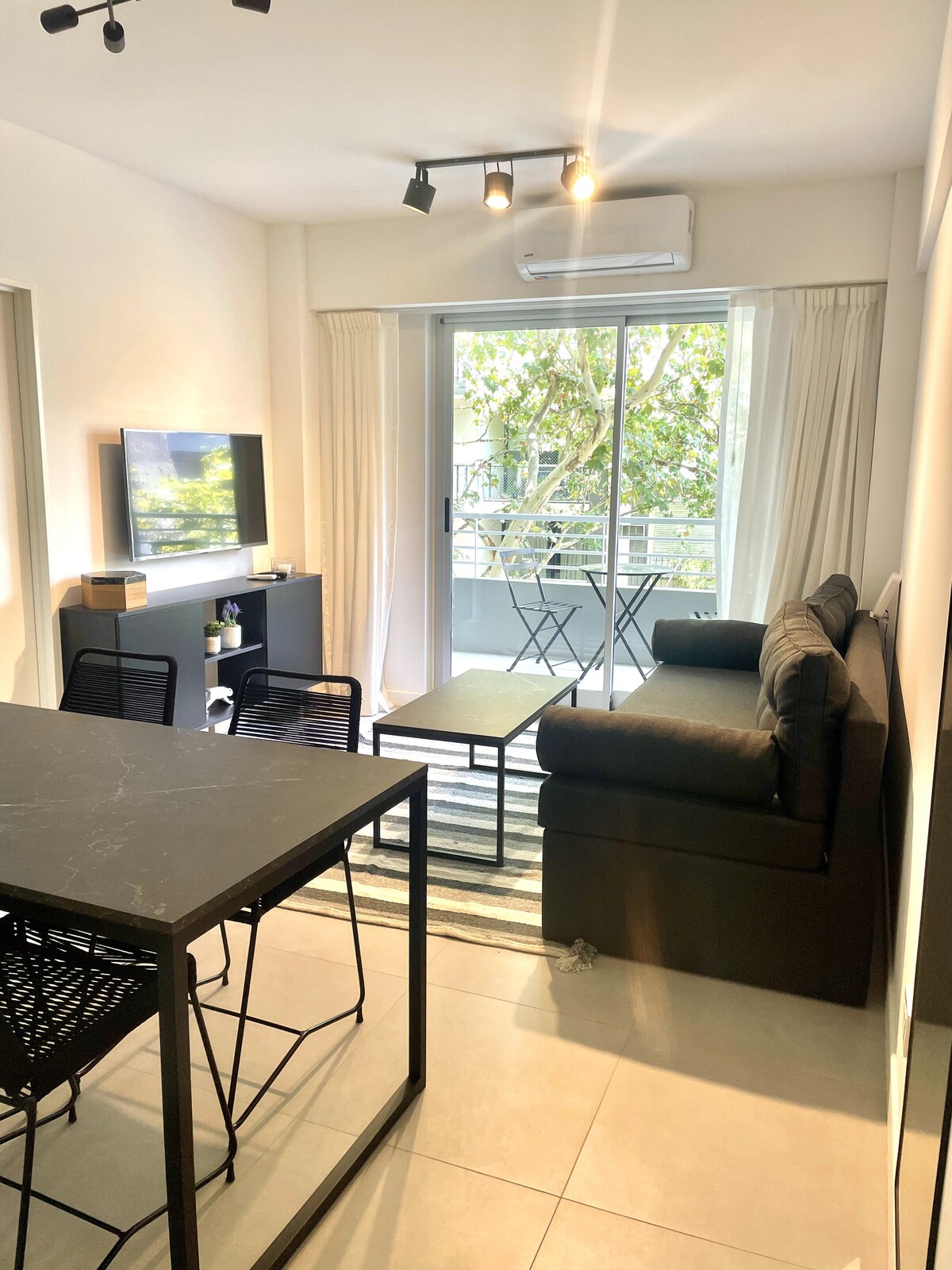 We offer an unbeatable, warm, bright, brand new space located in Belgrano, one block from the CHINA TOWN. The apartment has a QUEEN SIZE bed, full bathroom, kitchen, microwave, washing machine, COLD/HEAT Air Conditioning, NESPRESSO Coffee Maker, Smart TV, Cable TV, Platforms and WIFI. In addition to all this, there is a beautiful balcony terrace that fills the whole atmosphere with air and light! It's a comfortable place to rest after a day of walking around Buenos Aires!