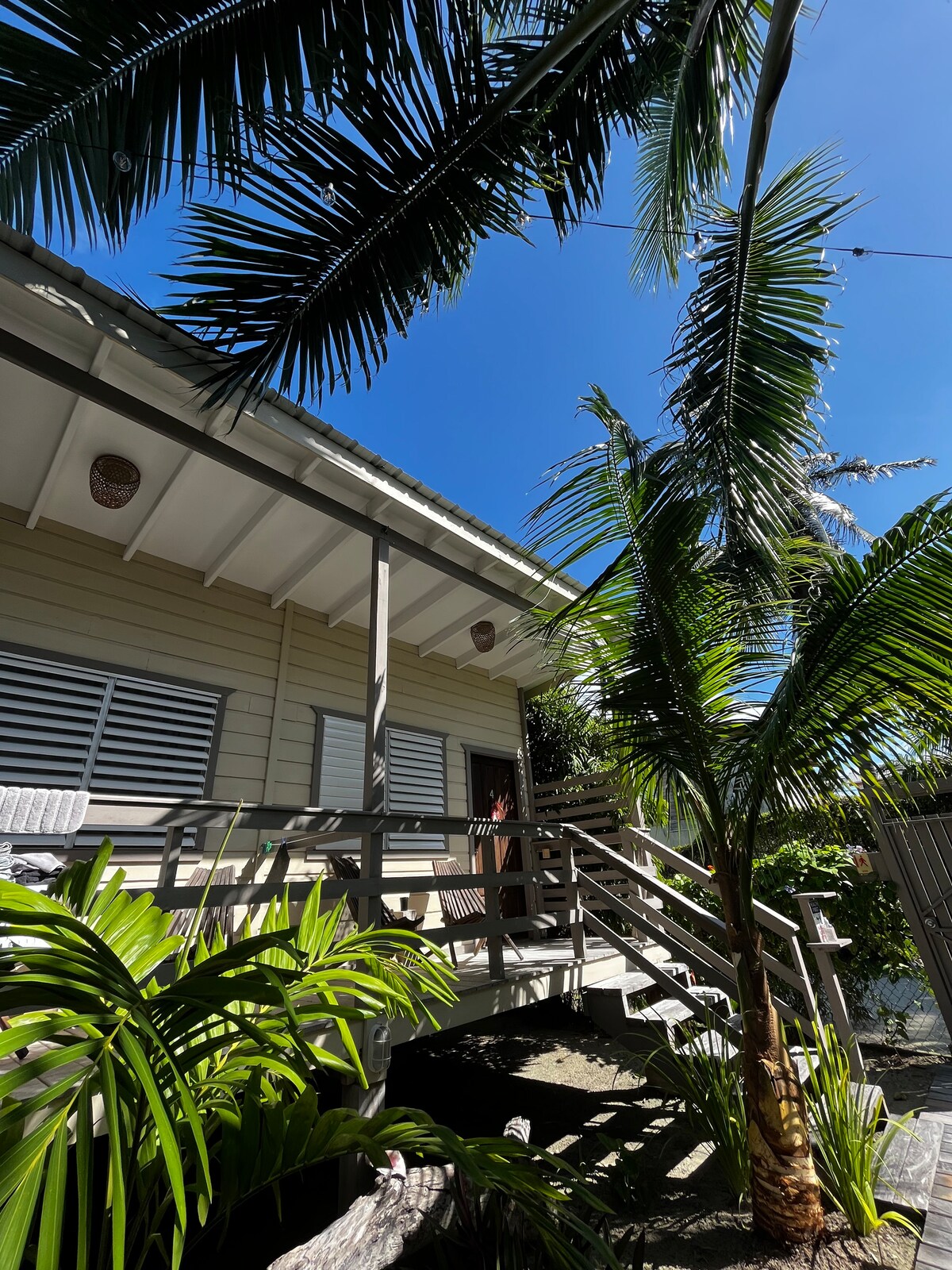 Typical Caribbean wooden building, with a touch of modern, European style and with a warm and special Italian welcome. Every private room ( 2 people ) has a Queen size bed and a private bathroom with a big shower. You will also find a fridge ( filled up with fresh water every day ), a fun, a little wardrobe, a kettle , AC ( included ) and a private porch looking to a shared garden. REMEMBER: at the check-in you will pay the 9% Tourism Belize tax. REMEMBER that the structure has 7 rooms !!!