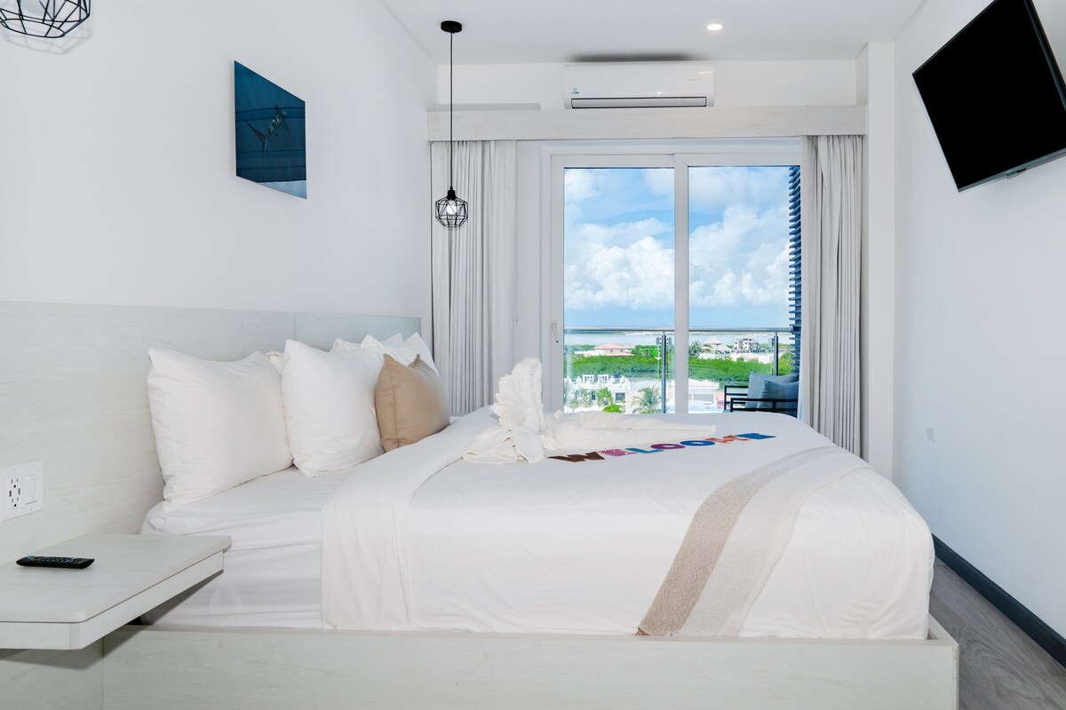 Oceanview 1 Bedroom | Unit 508 – The Watermark Hotel Dive into paradise at Oceanview Unit 508, a stunning 1-bedroom unit with a private balcony offering breathtaking ocean views. Enjoy modern comforts like air conditioning and free Wi-Fi. Dive into relaxation with access to a community rooftop pool, or explore nearby snorkeling and fishing spots. Perfect for your next Belize getaway!