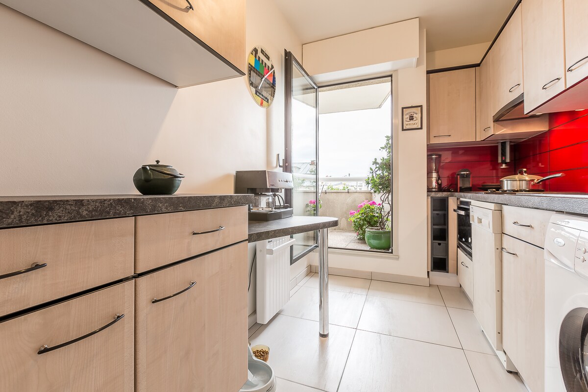 An 80 m² flat with a large balcony and panoramic views of Paris and the Eiffel Tower, on the 10th floor of an architect-designed building in the Le Corbusier style. Very sunny, with designer and vintage furnishings. You can dine on the balcony or lie back on the sun loungers whilst admiring the sunset, just 5 metro stops from the centre of Paris, in the heart of the very quiet and sought-after Jourdain neighbourhood. Parks, restaurants and shops nearby. Secure building with caretaker.