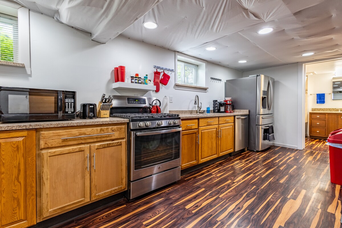 This recently renovated home blends an industrial vibe with the cozy comfort of home. It showcases original wood planking and craftsmanship from the early 1900s, adding character throughout. The open layout provides plenty of space, with a bedroom on the second level—perfect for relaxing with family or friends. This home is strictly for Airbnb travelers. No local residents will be accepted. Must be at least 25 years old to book.
