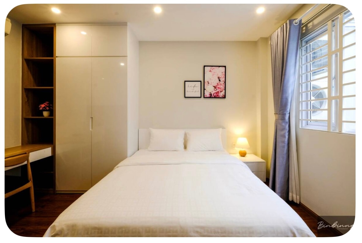 Established in 2023, We offer High Quality Short and Long Let Serviced Apartments located right on a busy street with famous cafes, restaurants, Circle K and convenient stores near by and just a few minutes walk to Bui Vien walking street, Tao Dan Park. Cost-effective compared to hotels, we provide 1 BR serviced apartments with privacy, modern style, kitchen, balcony, soundproof door & windows, desk space to work, rooftop garden, elevator, regular cleaning and the comforts of a “Home-from-Home”.