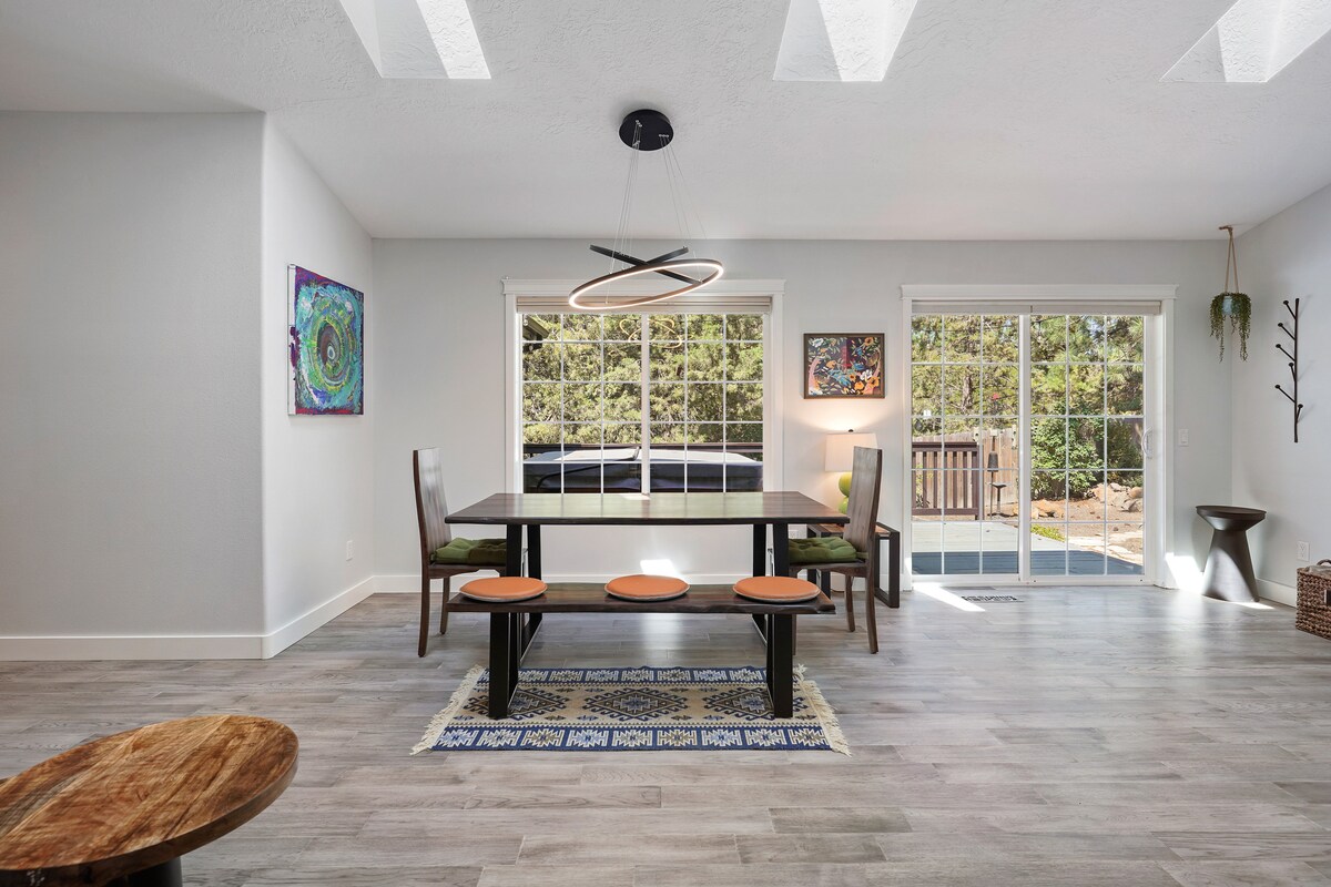 Cheers to your stay at Bent Pine Oasis, located in the picturesque west side of Bend! This home provides the ideal location for any outdoor enthusiast: Mt Bachelor's slopes are just a 20 minute drive & the Deschutes River Trail is mere steps from the front door- your avenue to biking, running and exploring Bend. Looking for a more relaxing day? You can make the 5 minute drive into the Old Mill District to enjoy food trucks, a river float, or fresh hops at a local brewery.