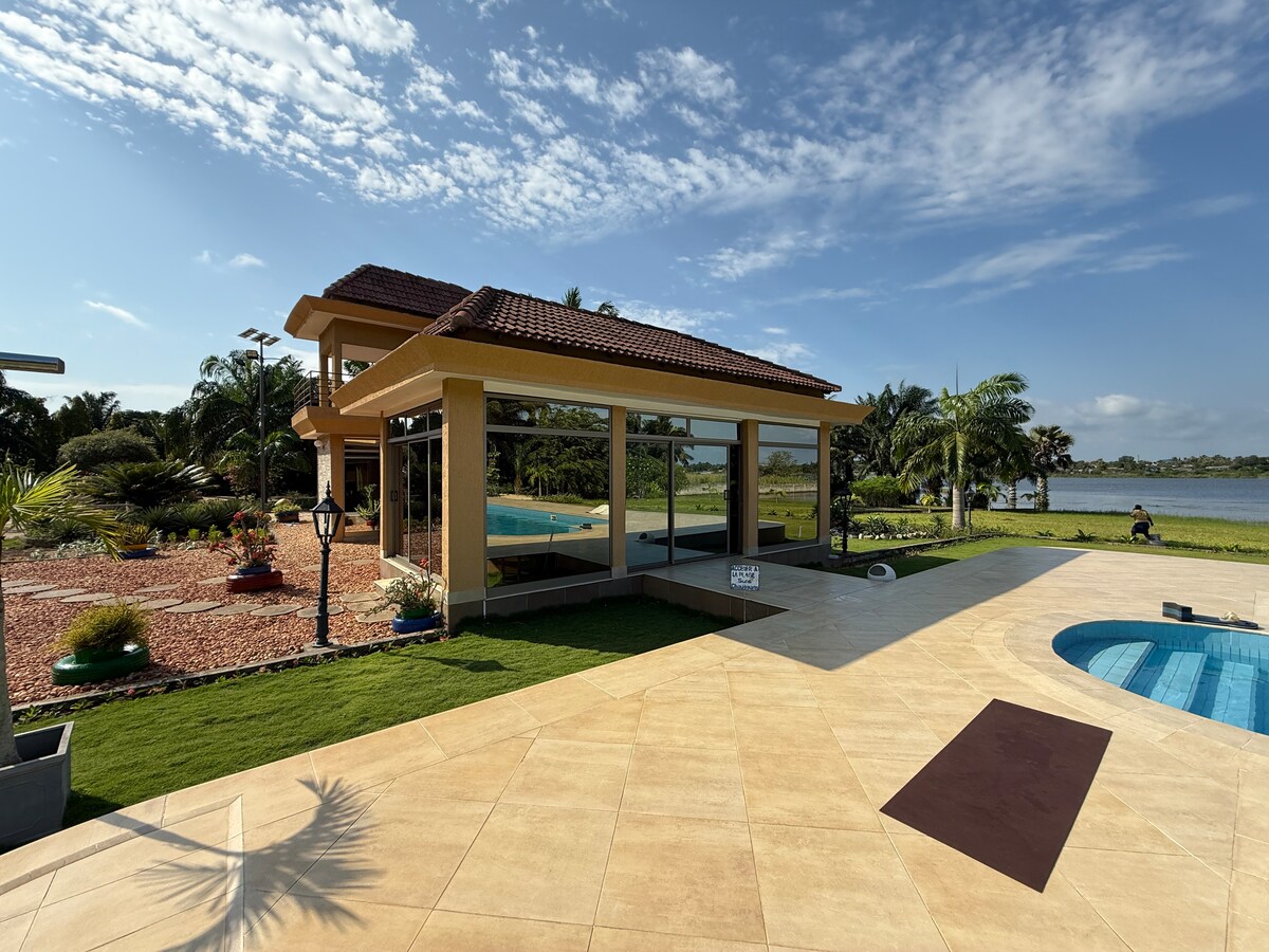 Welcome to Domaine Ilé Ola, the estate of happiness and serenity. Nestled on the shores of Lake Toho, 25 km from Cotonou, this peaceful retreat covers 2 hectares of tropical greenery. The estate includes a main villa, three private bungalows, a panoramic pool house with a 17 m pool, and a breathtaking view. 20 minutes from Ouidah, the estate offers an ideal setting for family vacations, spiritual retreats, private events or stays during Vodun Days.