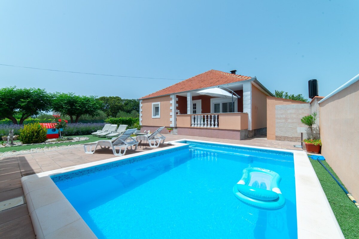 Holiday house Jona is located in a small village in the heart of "Ravni Kotari". The house is located on a 7000 square meter ranch that has a large guest-only swimming pool and is surrounded by vineyards and various fruit trees that guests have at their disposal. The house is ideal for a complete dream vacation where you can afford complete peace of mind. House Jona is new and fully equipped with dishwasher,washing machine,coffee aparat,grill,air conditioning,wi-fi internet, ultra-slim TV, etc.