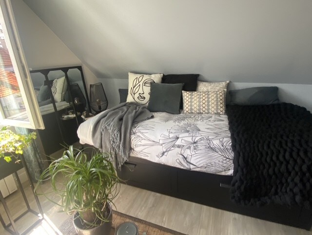 Appartement de 35 m2, lumineux, calme et cosy à à peine 400m de la mer et à 50m de la rue commerçante 🌊☀ - salon avec canapé convertible 140x190 et coin cuisine tout équipé pour 4 personnes (senseo, micro onde,...) - chambre spacieuse avc lit Queen size 160x200 (matelas de qualité supérieure) et grand dressing - salle d'eau : douche, vasque, rangement, WC Couettes, oreillers, torchon, tapis douche à disposition. Stationnement possible ds la rue. Draps et serviettes en option (prévenir 48h avt)