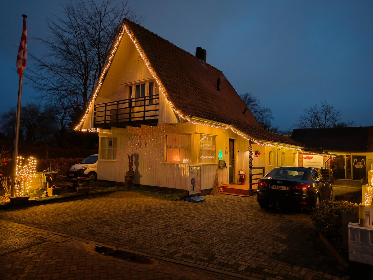 Complete guesthouse with a beautiful garden and possibility to use Hottub. The residence is on the grounds of a former calf farm. Nature reserve is around the corner where you can also enjoy hiking, cycling/mountain biking. When booking 4 nights, an evening hot tub is included. Hot tub can be booked for 40 euros. The bedrooms are separated by a closet wall and a curtain. Smoking and pets are not allowed inside. Smoking outside is no problem.