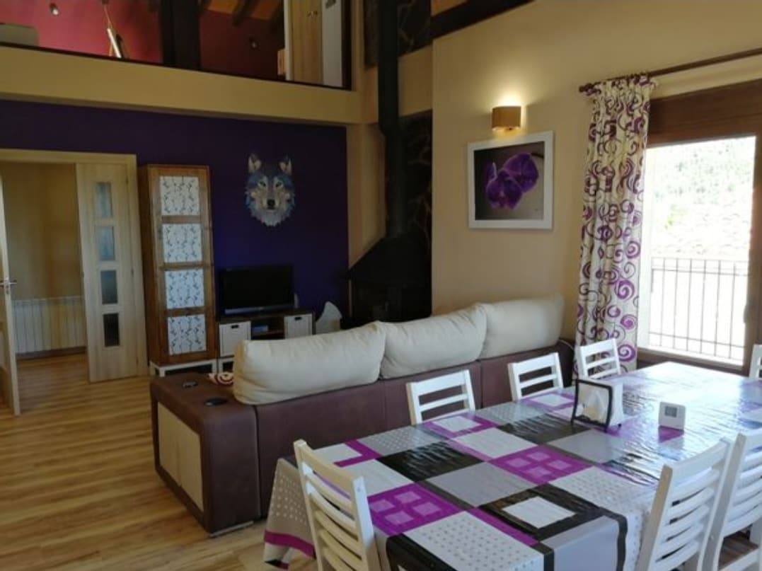 Small house located in the Serrania de Cuenca, surrounded by nature, with magnificent views and a large terrace. The house has a rustic-style dining room and an American kitchen, delimited from it with a decorative arch and a bar. It has two bedrooms and a bathroom with a bathtub. The house has a cozy pellet stove for winter days, it is fully equipped. Located within the Alto Tajo Natural Park in which there are countless routes and places to visit.