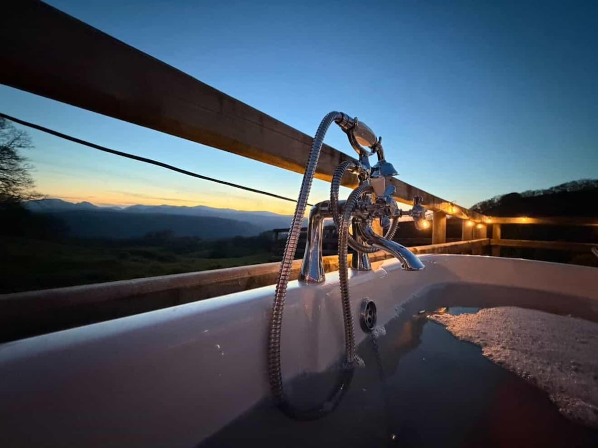 Stay with us on our busy working farm, in our cosy luxury pod. Wake up to breathtaking views of Snowdonia mountains and the Conwy Valley. Enjoy the peaceful surroundings, and spectacular sunsets from the hot tub. Derwen pod is situated by ancient oak trees, located in a rural, quiet and peaceful location in the National Park, where there's a wide range of activities in the area. In our cosy Derwen pod you can enjoy the glamping experience and home comforts at the same time.