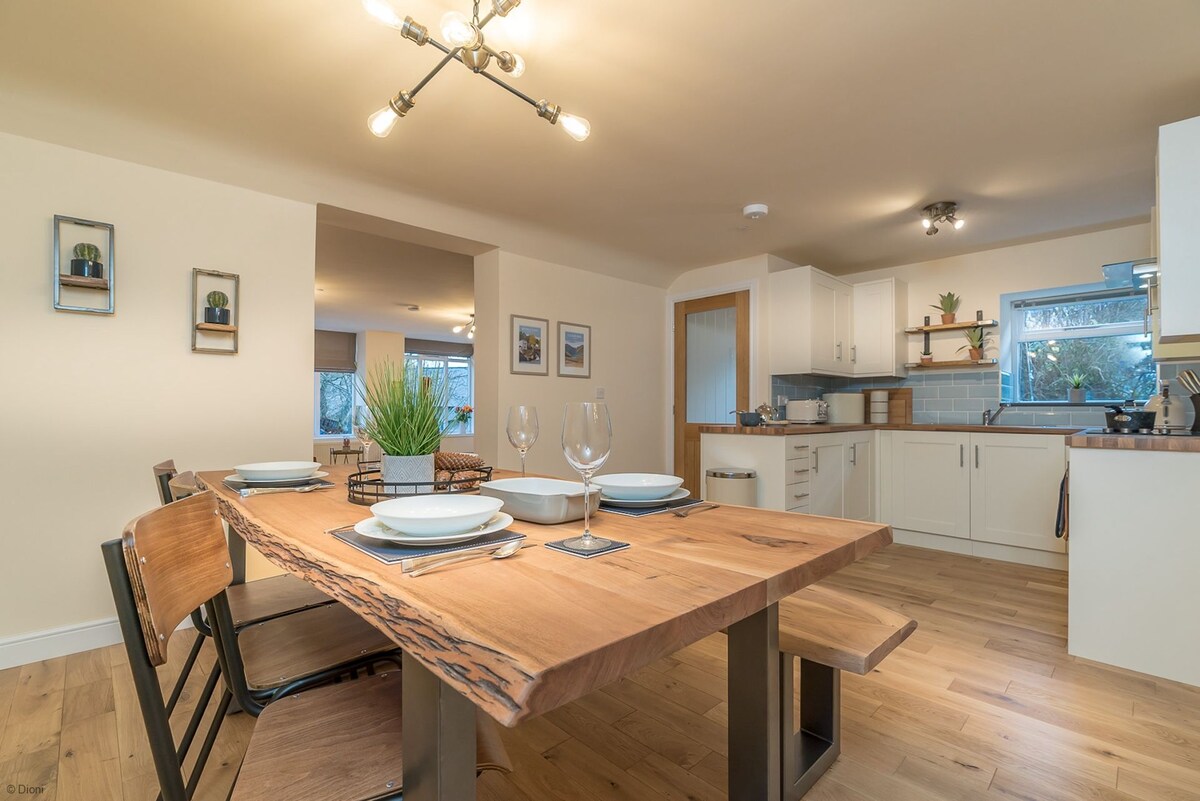 LUXURY COTTAGE "Maelog" is a newly renovated Welsh cottage. It has been in our family for four generations, and is a much-loved family home. Perfectly situated in the foothills of Eryri/Snowdonia - in the historic market town of Llanrwst. Having four double en-suite bedrooms, 8 guest. Large kitchen-dining spilling out onto a sunny deck, with gorgeous un-spoilt meadow views, a warm, cosy lounge and bright sunroom leading to the rear private garden. There is a private drive for parking (3+spaces)