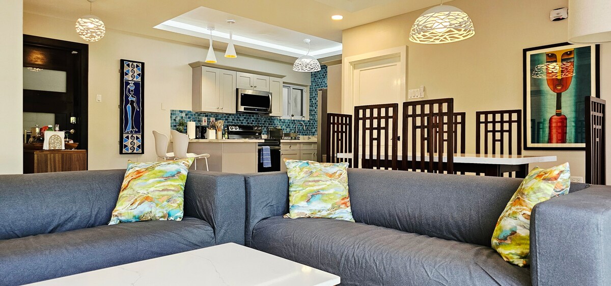 Enjoy the best of the city at a stylish condo located at Liguanea in Kingston. This City getaway is conveniently close to: U.S.-Embassy, Sovereign North plaza, Progressive Shopping Plaza, Sovereign Centre, Bob Marley Museum, Banks, Barbican area, shopping & restaurant locations. With a modern designed interior, the apartment is perfect for families, friends, solo travelers, visiting for business or leisure. Relax at a secure complex, featuring a pool, a roof terrace +more