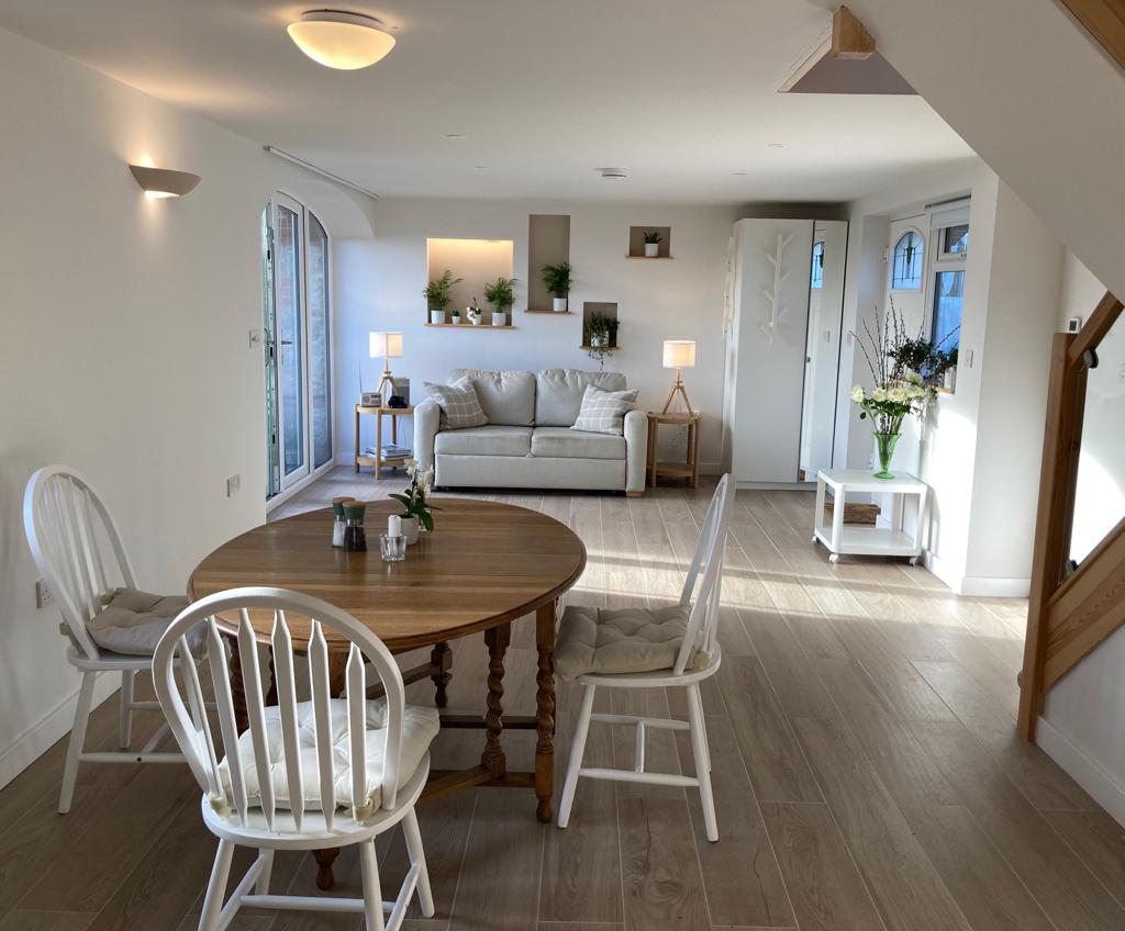 Recently refurbished one bed accommodation suitable for up to four people (and one well behaved dog) but please note 3rd and 4th guest will be using the sofa bed in the living room. Use of the wc and shower is accessed via the main bedroom. Plenty of storage for our guests is available and there is a large patio area with barbecue and table and chairs for your sole use. There is also one off road parking space available. We have great links to the Jurassic coast, market towns and Country walks