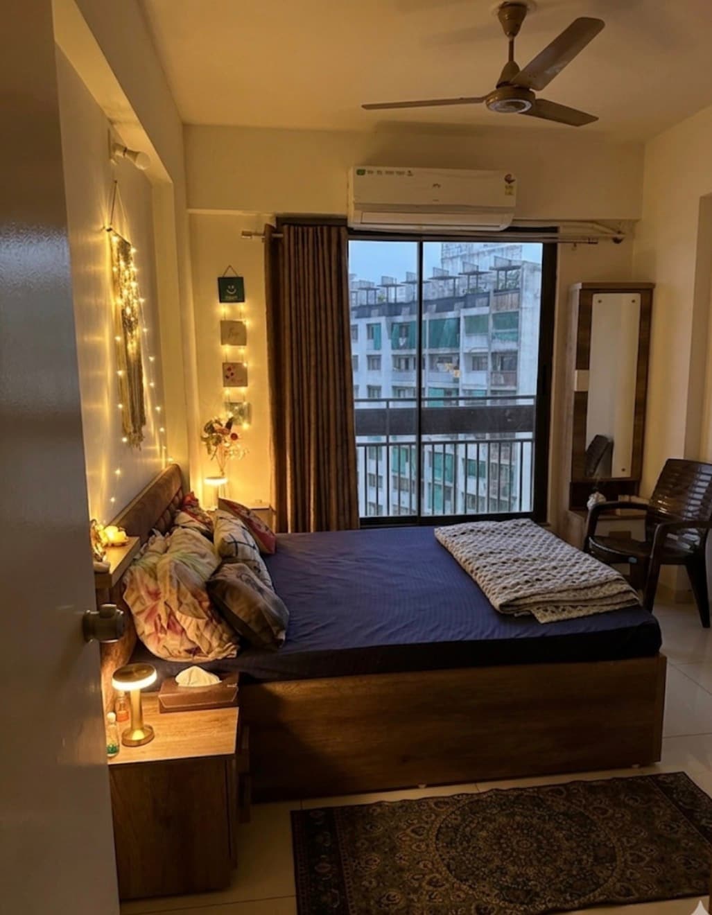 A modern, serene, and immaculately kept 2BHK apartment in the secure and peaceful Shantigram society. Designed with a clean, light, and airy aesthetic, this entire apartment offers superior comfort and convenience for families or groups (up to 4 guests). Your Pristine Stay Includes: * Two Queen Bedrooms * Enjoy perfect temperatures with 3 AC units living area and bedrooms * Fully Equipped Kitchen * Modern Utilities: Washing Machine and Instant Geysers in both bathrooms for hot water * WiFi