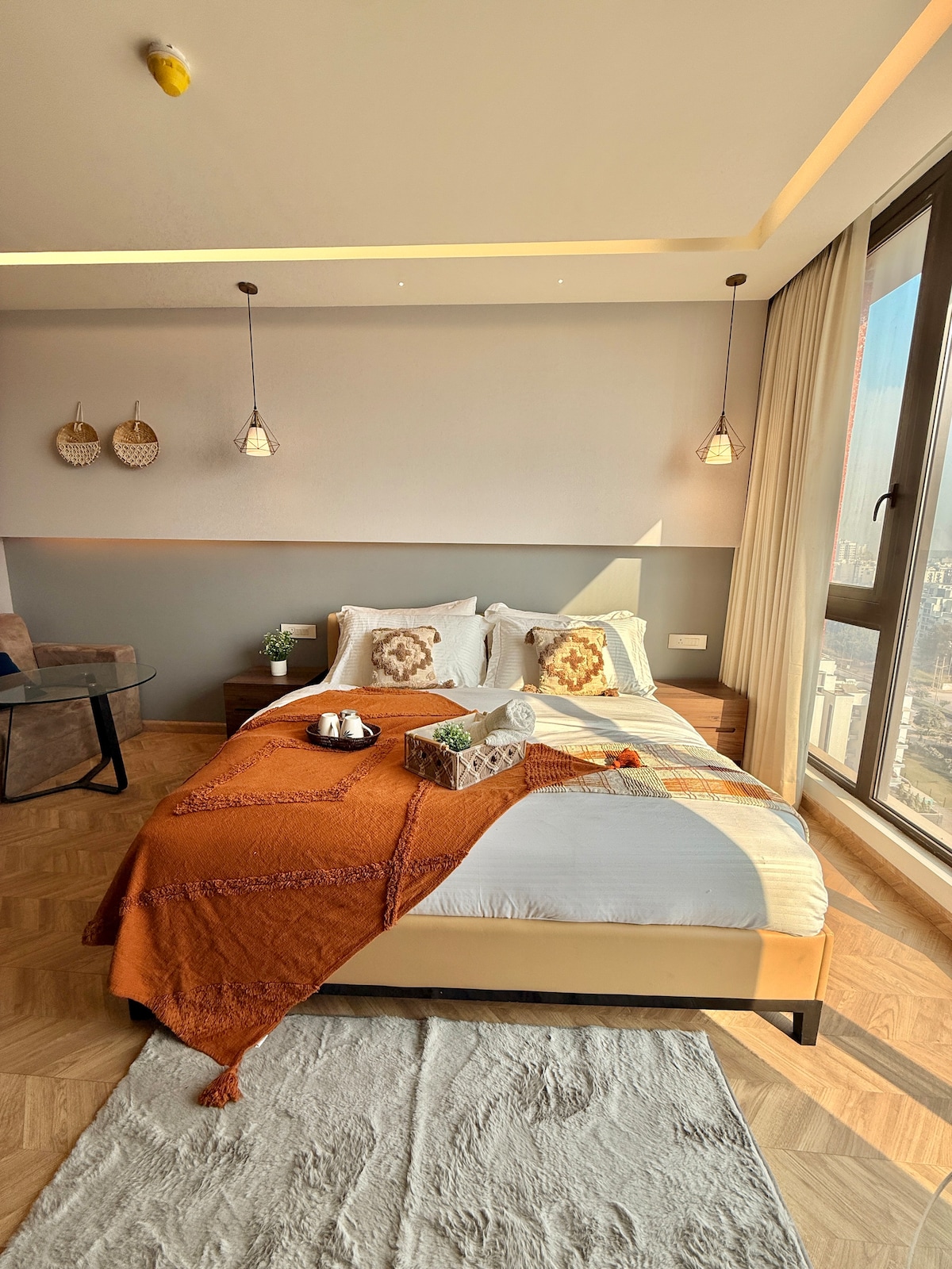Experience a modern, cozy studio at M3M One Key Resiments – Sector 67, designed for comfort, safety, and stylish living. Enjoy a zero gravity and anti snore mode vibrating massage bed for your relaxation, warm décor, a romantic balcony, and all essential amenities. Perfect for couples, solo travellers, and business guests seeking a peaceful yet premium stay with access to M3M’s common areas which includes in house dining, swimming pool, pool table, marketplace, many more.
