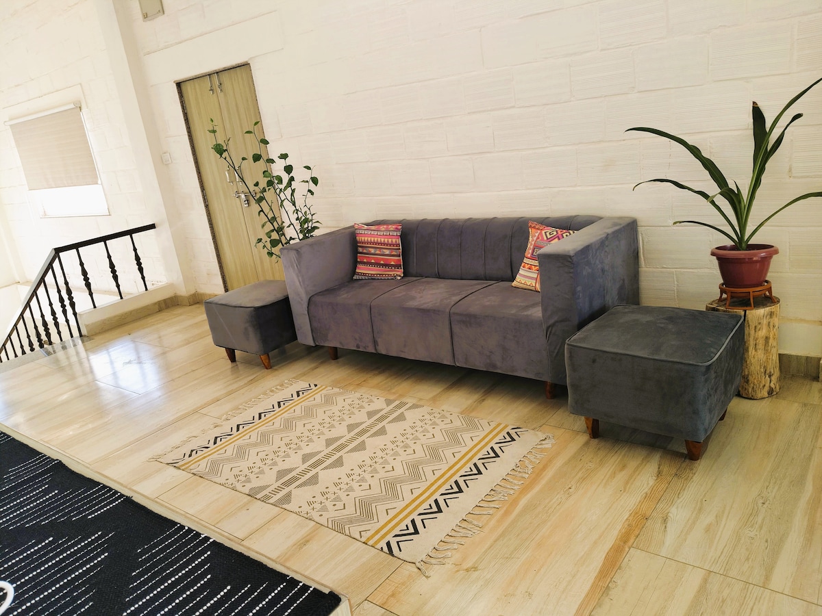 From the house of Stayinn ,here comes another jewel spacious Studio Nest room With Smart convertible furniture , kitchenette and Working on simple philosophy of "design makes life look beautiful", we present to our guest a vibrant experience of stay with Orthopedic Memory foam mattress , SMART TV with inbuilt OTT platform, Inverter AC, super clean Washrooms & linens, equipped kitchenette , walkable from AIIMS Bhopal & SPS. we love to host , visit us to experience!!