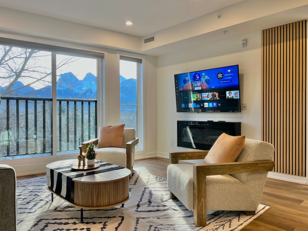 Overlooking the gorgeous Rocky mountain from the balcony, bedroom & living room, this new renovated one-bedroom condo provides you with all amenities you would expect. The bed room features a comfortable king bed. In the living room there is a high quality sofa bed to accommodate extra guests. The fireplace provides a cozy ambience. Free Wi-Fi and smart TV with Amazon Prime Video & Shaw TV for your leisure. Fully equipped kitchen and deep soaker tub with shower can make you feel just at home!