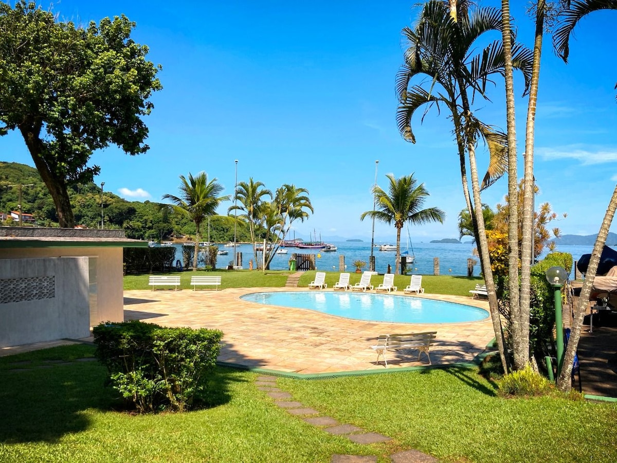 Apartment on the edge of Praia Grande in Angra dos Reis, one of the best beaches in Angra with access by car. Quiet beach without waves, with crystal clear water and access to boats for trips to the islands. Apartment with air-conditioning in the bedroom and living room, 120 mega internet (great for leisure or work), TV with Netflix and Amazon Prime, complete and equipped kitchen, covered garage for 1 car, external structure to enjoy the beach and a breathtaking view!!