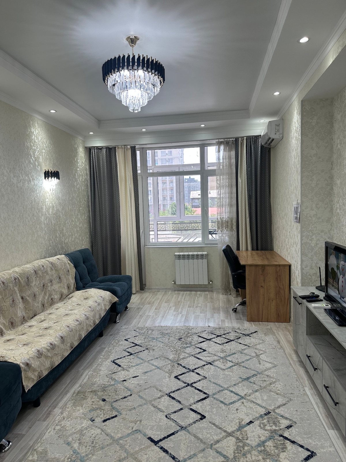 Welcome to our luxurious and spacious apartment located in the heart of Bishkek! Step into a place of comfort and convenience where every detail has been meticulously crafted to ensure an unforgettable stay. Stay connected throughout your stay with high-speed Wi-Fi. And with 24/7 security, you can rest easy knowing that your safety is our top priority. Whether you're here for business or leisure, our apartment provides the perfect home away from home.
