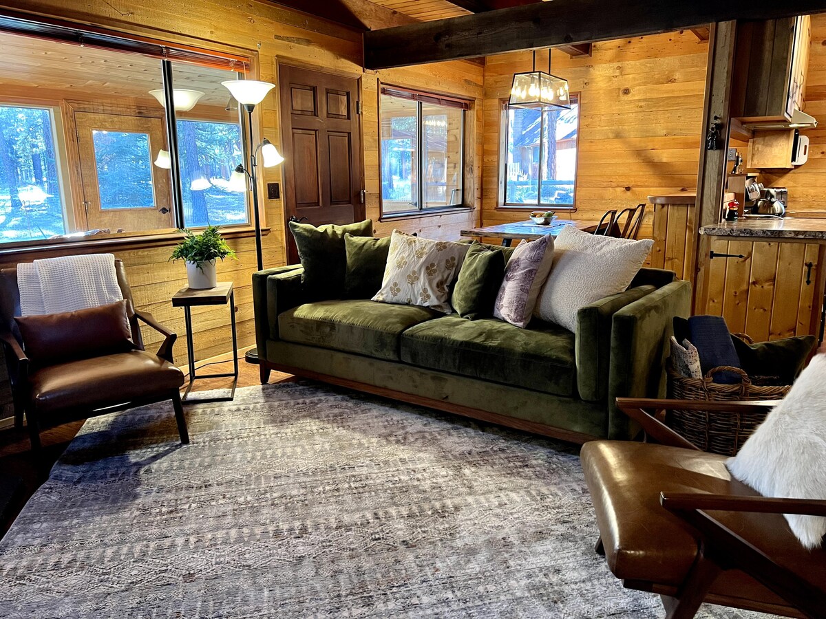 Located in Black Butte Ranch, this recently updated 1970s vintage cabin has all the modern comforts of home. Smart TV, WiFi, BBQ Grill and cozy fireplace. This 975sq.ft cabin boasts an efficient and comfortable floor plan. Two bedrooms and one bathroom on the main with 3rd bedroom in semi-private loft upstairs. New appliances and necessary cooking staples in the kitchen. We do our best to keep it stocked with common spices, oils and condiments. 2pm Check-In!! Resort fees Included in my rate!!