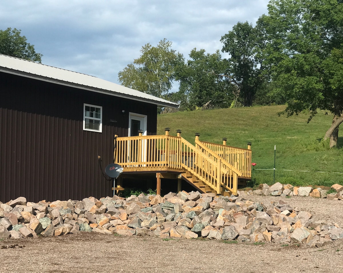 You'll love this place because of the spectacular views, horses, wildlife, fishing, hiking and hot tub for relaxing, a romantic getaway or simply just girl time. This spot is perfect for couples or solo adventurers! A unique suite is attached to an elegant vintage peg barn. Space for bringing horses, snowmobiles or ATV's since we have trails. A mile away from snowmobile trails and 25 mins from a State Park. Also, perfect for snowshoeing and cross country skiing. Fire pit available.