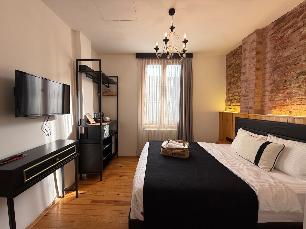 This unique room, carefully decorated while preserving its historical texture, combines modern comfort with a nostalgic atmosphere. It offers a pleasant accommodation experience with specially designed wooden furniture, warm lighting and original wall details. Just a 1-minute walk to Istiklal Avenue and a 3-minute walk to the metro, this room is a great option for those who want to discover the energy of the city.