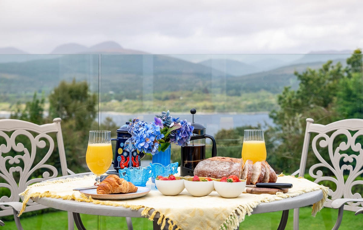 Beautifully situated on The Wild Atlantic Way, convenient to exploring Ring of Kerry and the Ring of Beara and within 5 minute drive to the pretty town of Kenmare. Bayview Lodge is on an elevated site with spectacular uninterrupted views over Kenmare Bay and the Kerry Mountain range known as The McGillycuddyReeks. These amazing views can be enjoyed from the large balcony and from almost every room. The Apt is on a stunning country lane, perfect for walking and nature lovers.