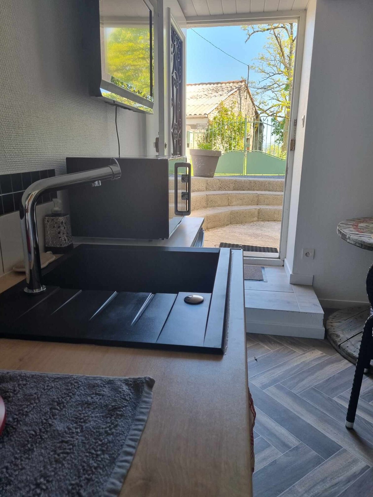 The 35 m2 gîte is located at the southern end of our property. It has a separate entrance, a beautiful terrace, an equipped kitchen with sitting area (approximately 12 m2), a bedroom with a 160 double bed, office area and an en-suite bathroom. The accommodation is comfortable and bright. It overlooks a large garden and vegetable garden. It belongs to the peace of a village while being close to urban life. Self check-in in case of absence of the owners.