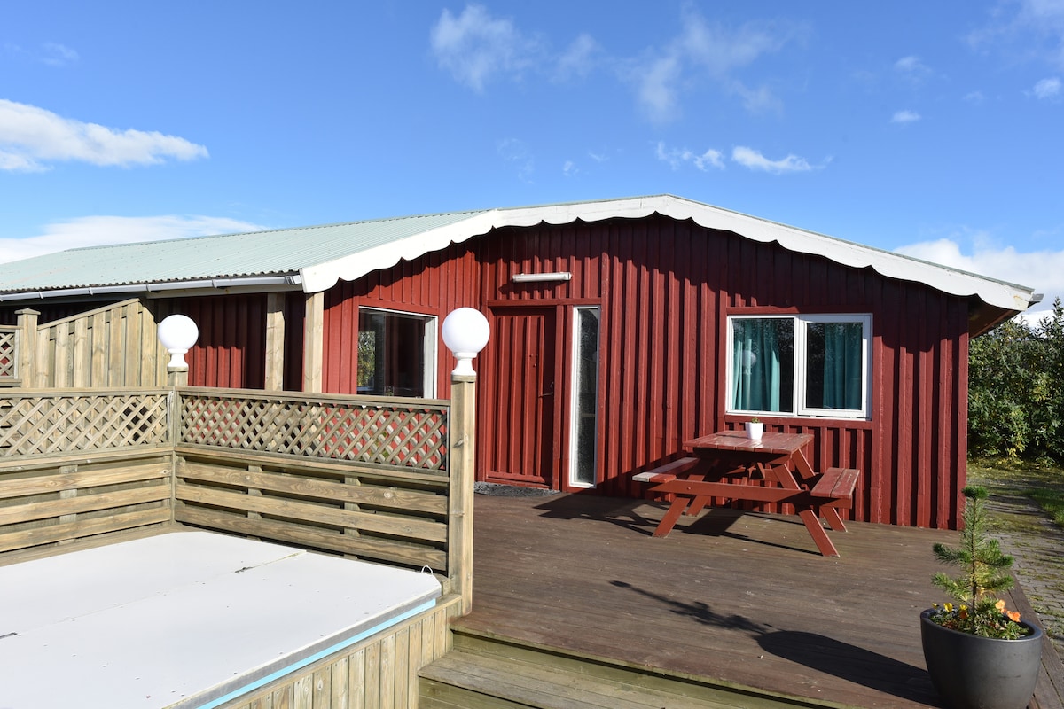 Our cozy cottage with a geothermal hot pool, offers a quiet retreat where you can slow down and enjoy the calm of North Iceland. The hot pool, located just a few steps from the cottages, is available to our guests 24 hours a day, all year round. It is a perfect place to relax in summer and watch northern lights in winter. We are easy to reach (even with a small car) in all seasons and there are many activities and natural landmarks in our area.