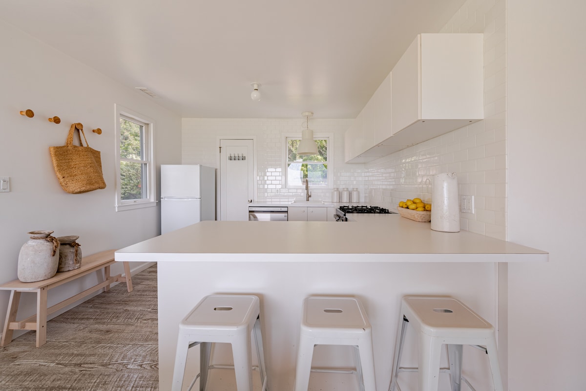 Newly renovated and featured as a top Airbnb by New York Magazine, The Beach Cottage has been designed and decorated in a modern organic style, with a palette of whites and neutrals to create a serene and peaceful escape. Relax in the airy, light and open living room, which features a wall of glass for indoor/outdoor living with expansive, uninterrupted water views. Stay on the property for swimming, beach walks, sunsets and BBQs - or venture out to enjoy all the North Fork has to offer.
