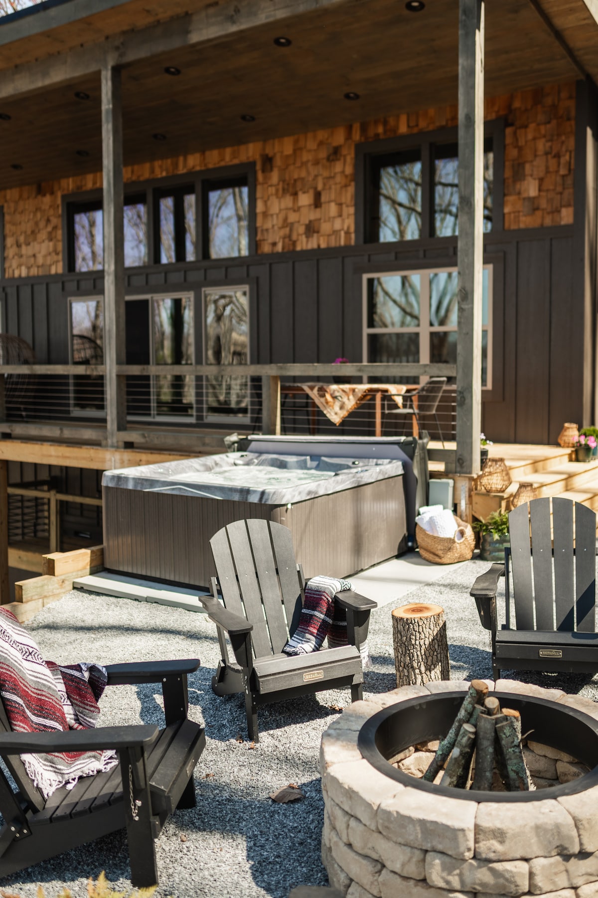Relax in this peaceful and private modern space. A quick drive from the city and you've arrived at this escape from the hustle and bustle. Yet when the mood strikes for great restaurants, trendy bars/breweries, and unique small-town shopping you're only minutes away from downtown Blue Ridge. In this completely updated cabin you'll experience total privacy in the indoor hot tub, gorgeous screened in porch with swing bed and tv, huge walk-in shower, serene firepit, new grill & firepit table.