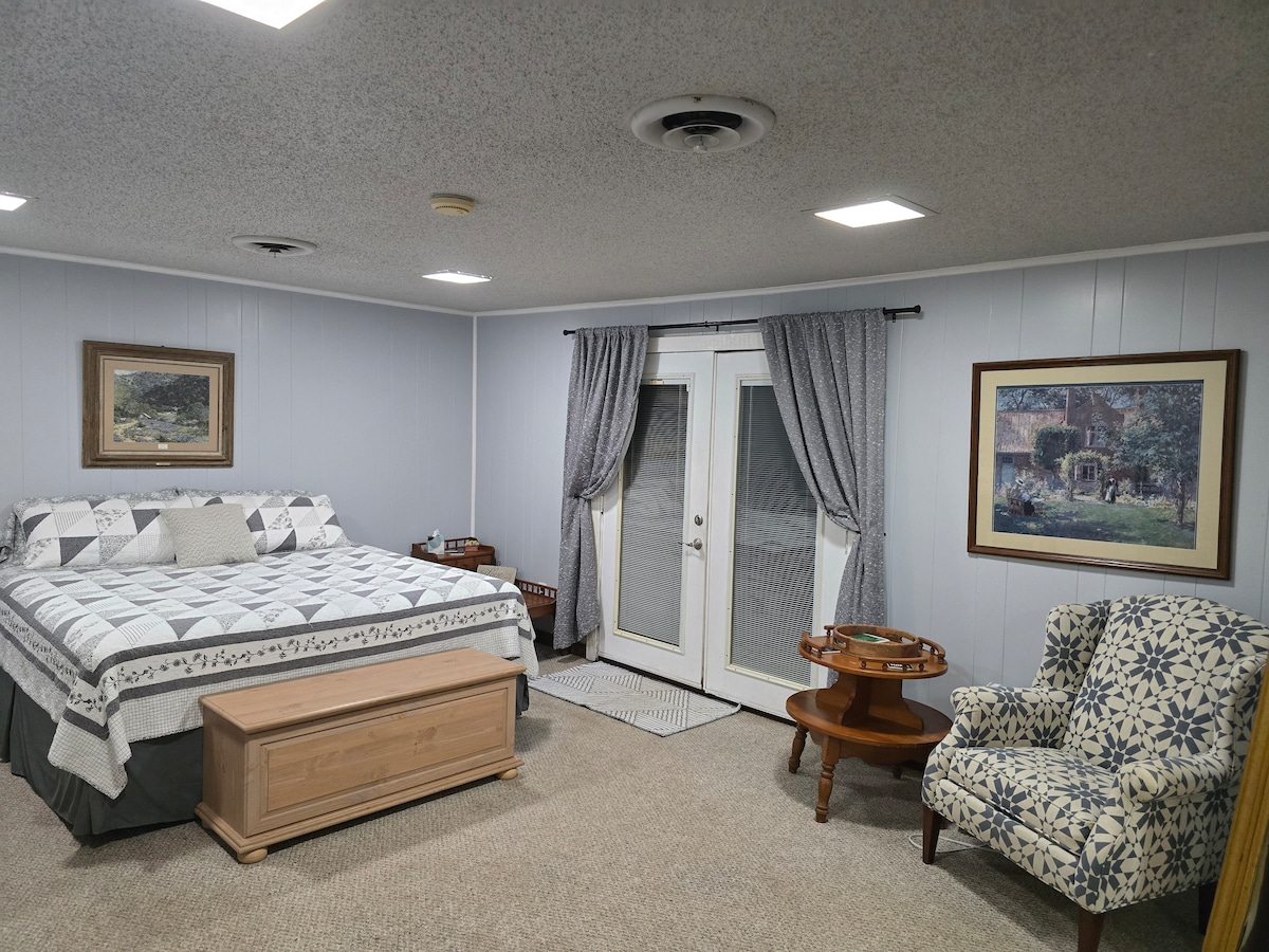 Large open concept studio with queen bed, full size sofa bed, fully stocked kitchen with full size appliances, covered parking, satellite TV, coffee, and tea provided. The bed and living area are shared space as this is a studio. The cottage is located behind main residence with self check in and check out ease. Outdoor dining can be enjoyed on the porch or enjoy sitting in covered gazebo swing. It is our desire to bless travelers with a comfortable and affordable place to stay.
