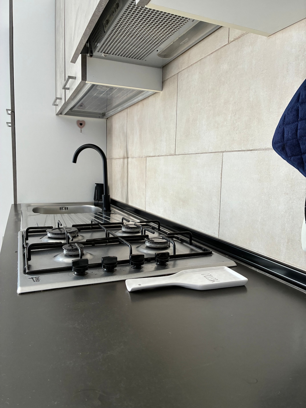 Grande appartamento luminoso, dotato di 2 camere da letto matrimoniali, sala, cucina abitabile, dotata di tutti gli accessori necessari, sala con tv ip, bagno doccia,wc,bidet,lavandino .. acqua calda. Ampli spazi in giardino privato con giochi altalena per bimbi, gazebo abitabile illuminato di notte, griglia disponibile e uno spazio per riporre le attrezzature sportive in sicurezza