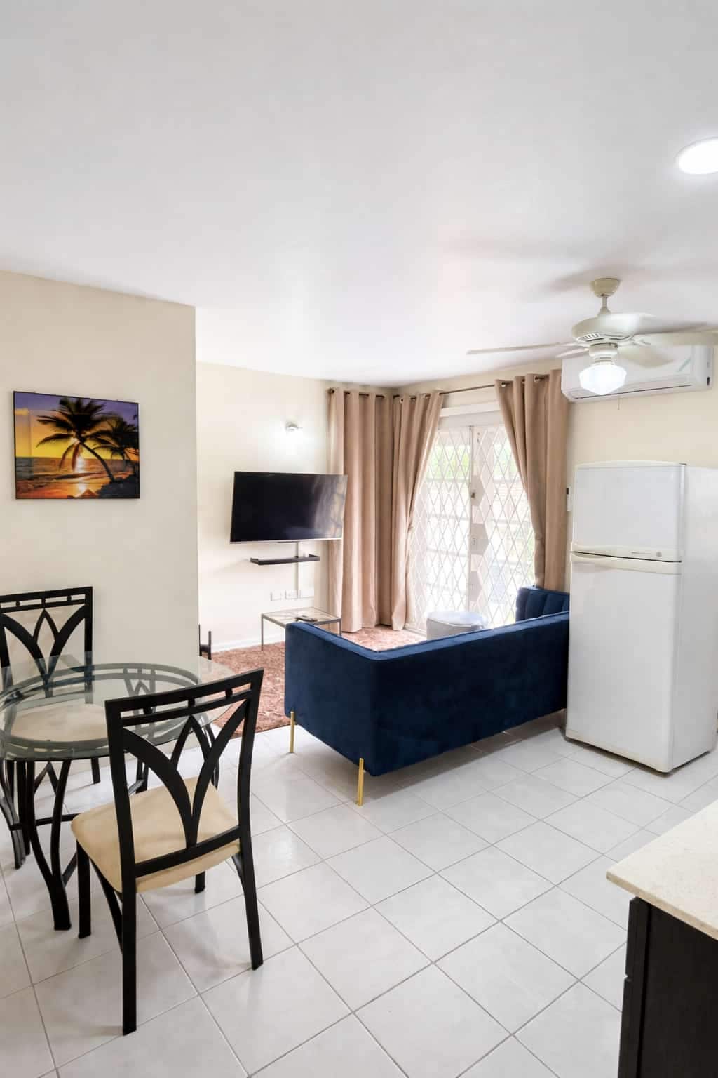 Enjoy a stylish experience at this centrally-located apartment in the prominent and well sought after, Liguanea. The area boasts diverse restaurants, shopping malls, entertainment including a vibrant night life, gyms, supermarkets, pharmacies and other essential amenities. The apartment is situated in a well-maintained gated community with lush garden spaces, dedicated laundry area equipped with a washer/dryer, free self parking, wifi, cable, air conditioning and access to streaming services
