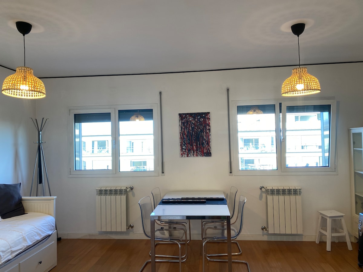Apartment converted into a 38m2 studio, renovated 2 years ago. It is my own home that I renovated with great affection. I rent at certain times and stay with family. It's just 5 minutes to the train. Supermarket, restaurants, bike path, pharmacy, laundry, all within a 2-minute walk. 4 km from Oriente with transport links to the entire country. 4.5 km from the airport but without noise. It is located on the 4th floor without an elevator, not being suitable for people with limited mobility.