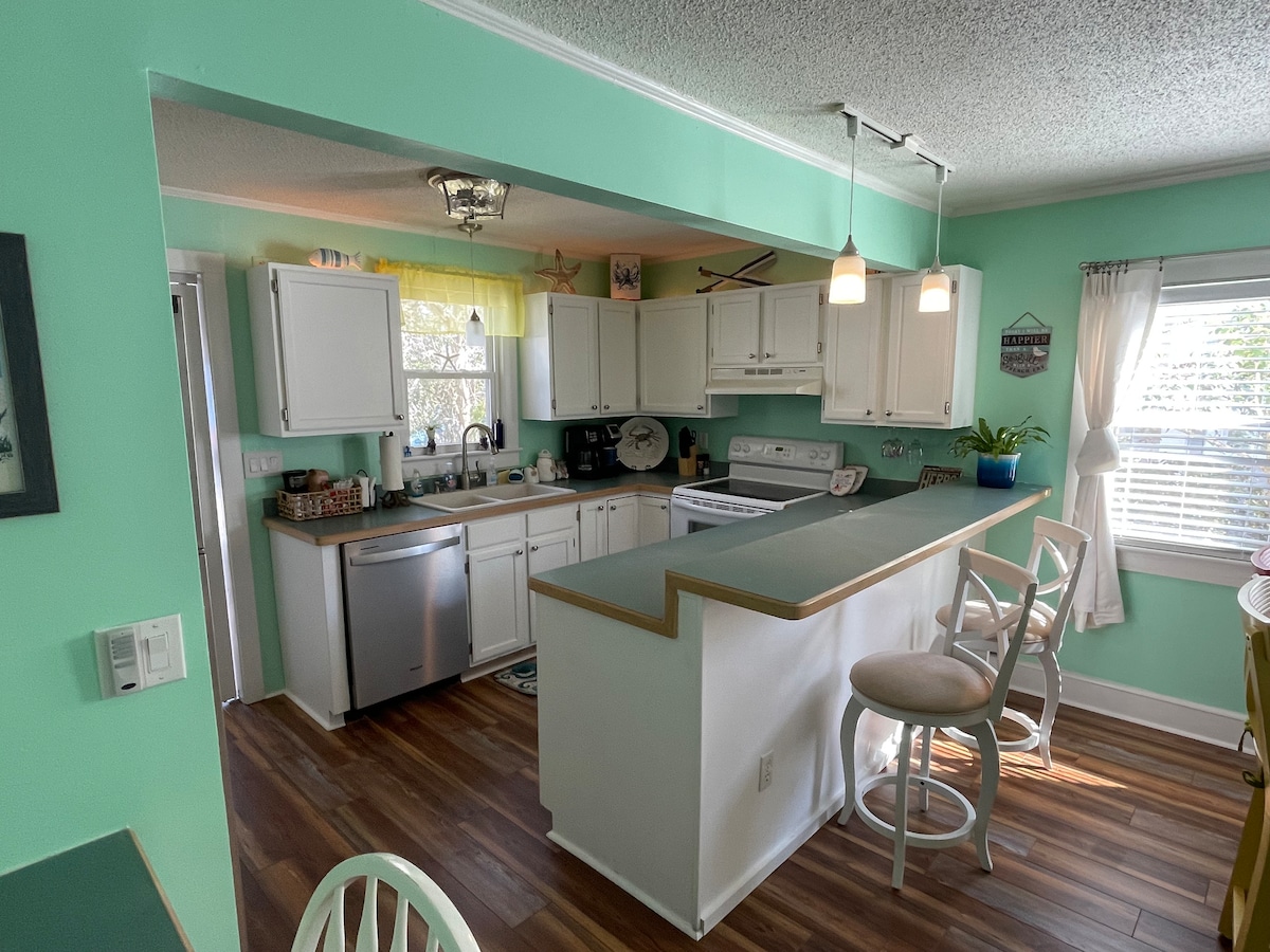 This coastal cottage located in beautiful Cape Carteret sits in a quaint waterfront neighborhood just a short distance to Emerald Isle beaches, local dining and entertainment. Bring your boat, jet skis, bikes or golf cart—there’s plenty of room in the driveway! All modern amenities are offered, including: -Paved parking -Porch with built-in furniture -Newly renovated kitchen stocked with cookware -Washer and Dryer -Dishwasher -Fast Wi-Fi -AppleTVs with YouTube TV