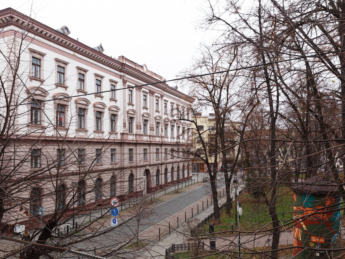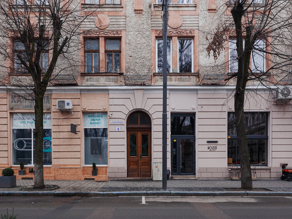 Wifi працює під час відключень. В помешканні є зарядна станція. Помешкання знаходяться в історичному середмісті, на головній пішохідній артерії міста – стометрівці. 5-10 хв до супермаркету, кав'ярень, ресторанів, парку, Ратуші, музеїв, Бастіону. Австрійський будинок 1900 року в стилі сецесія з відреставрованими вікнами, дверима та паркетом. Стильне, просторе та затишне помешкання зі зручностями. Житло оснащене 4 спальними мiсцями (лiжко та диван). Ласкаво просимо :)