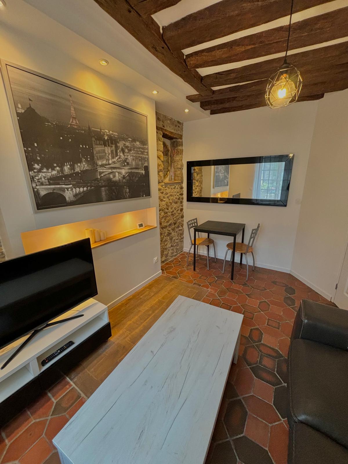 "Life is good" At Marie & Vincent's Charming 32 m² F2 apartment on the ground floor, located close to Place Saint Gilles in the heart of Etampes. 35 minutes from PARIS by train, close to Etampes train station (10-minute walk) and the city center. HIGH-SPEED FIBER WIFI. Philippe Gaulier International Theatre School (8-minute walk).