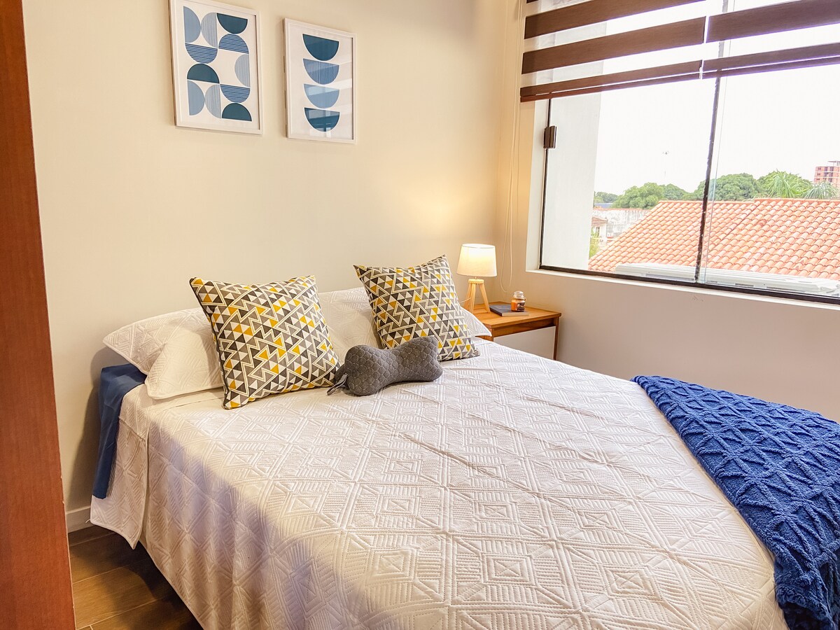 Enjoy your stay in a charming studio apartment, located in Equipetrol, one of the most exclusive and safest areas of Santa Cruz. The space with high-speed WiFi, Smart TV with Netflix. Ventilated, comfortable environment with excellent natural lighting. The building has a pool to relax in your free time; 24/7 security service for your peace of mind. Whether for work or rest, here you will find the perfect balance between comfort, location and style. We look forward to seeing you!