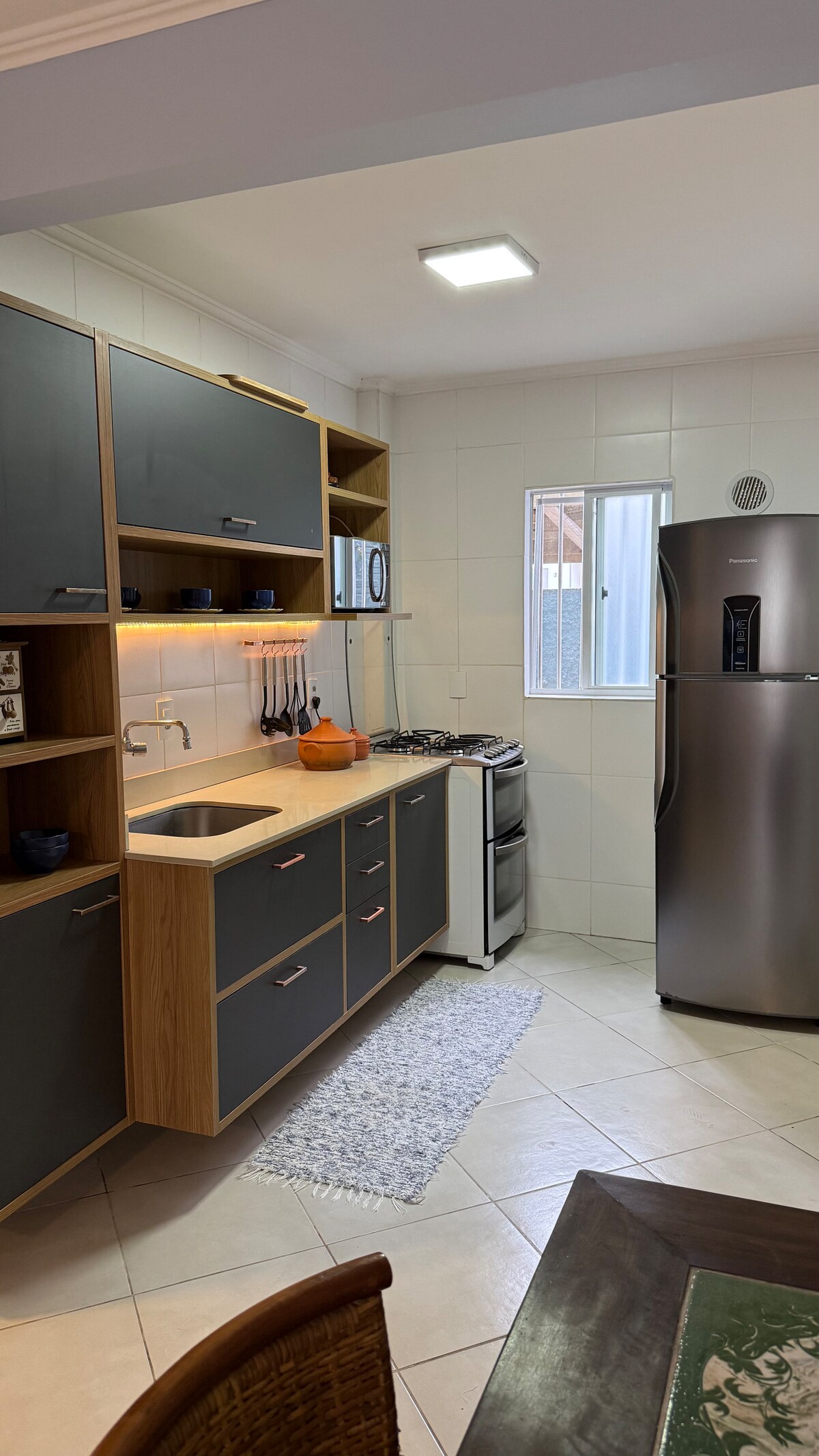 🌿 Ideal retreat for couples in Bombinhas Apartment for couples 500m from the beach and downtown Bombinhas. Cozy room with air conditioning, living room, equipped kitchen, fiber Wi-Fi and individual parking space. Common use barbecue. Sheets, towels, beach kit and basic utensils included. Perfect for relaxing and enjoying quiet days for two with comfort and privacy.