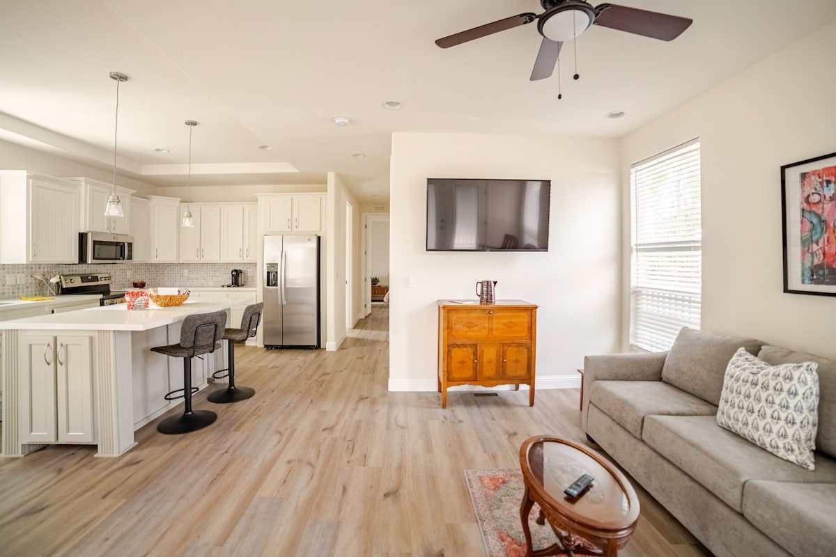 Close to Gaylord Resort and historic Third Ave. with cafes, restaurants and shops. Beautiful walkable neighborhood. Near two main freeways -only 10 to 25 minute drive to all major sights like Balboa Park, Zoo and beaches. Relaxing garden retreat with private entrance and patio. Separate heat/AC unit - high ceilings, electric fireplace, TV, comfortable queen bed, living room, kitchen/work table, steps up to bathroom and a beautiful private garden patio. Self check-in. Parking on street.
