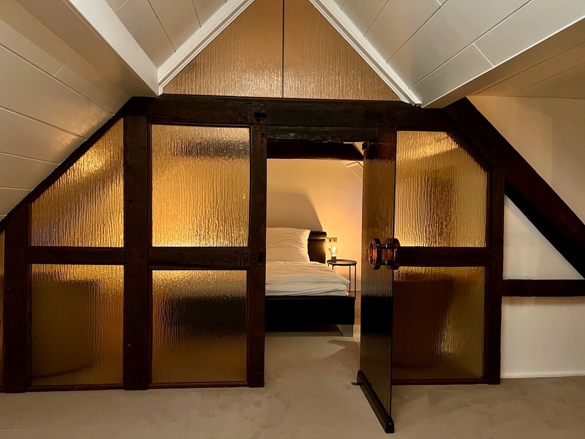Welcome to my cozy attic apartment! Immerse yourself in the charm of the oldest house in Plittersdorf. Whether an evening walk or enjoying nature, the immediate proximity to the Rhine offers a true relaxation factor. Nevertheless, be well connected: In just 15 minutes by bus to Bonn main station Culinary travel: There is a small and delicious French restaurant right in the house. I look forward to meeting you!