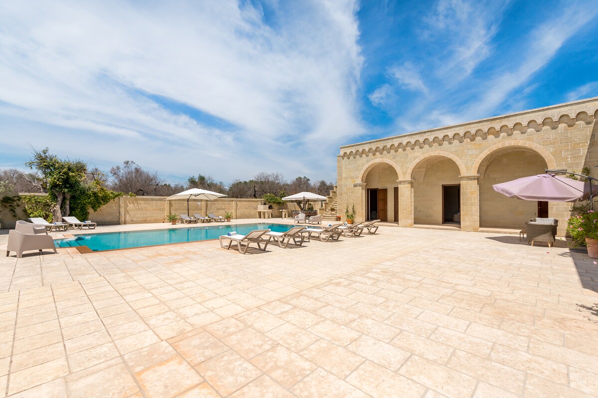 The accommodation is in a Masseria in the Salento countryside a few km from the sea of Otranto, ideally located to reach both the Adriatic and Ionian seas. It is located in the heart of the "Grecìa Salentina", a land of ancient traditions. The property has a large garden and a swimming pool available for guests.