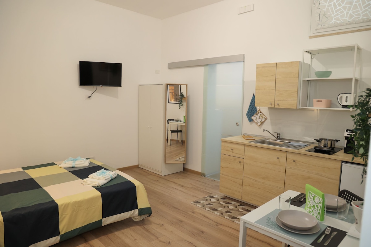 Charming cave dwelling w/relax area in the heart of the Sassi. You won't share anything with others because the apartment fits only one family/guest per time. It perfectly blends the magical feel of the old tufa caves with all modern comforts.The owners family has got an international background and fluently speaks English,French & Japanese
