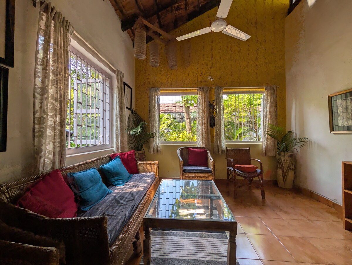 Large 1 bedroom + living room villa, sleeps 4, ocean views from every room, sunbathe or lie on hammocks under a canopy of coconut trees, enjoy fresh coconuts from our trees, home-cooked meals, breezy weather, star-lit skies, and a secluded beach. Visit the Murud fish market for fresh catch, explore Creole ruins at Revdanda fort (20 mins drive), or rent cycles or banana boats and explore Nandgaon village. Ideal for families, couples, or reunions. Available with a cook, cleaner, gardener.